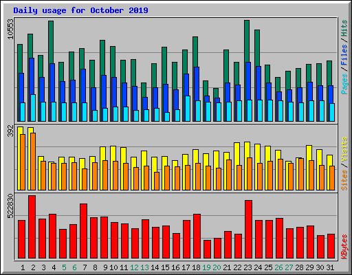 | Day | Hits | Files | Pages | Visits | Sites | KBytes | ||||||